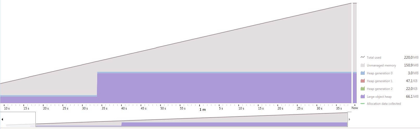 Низкий объем потребления памяти при небольшом количестве посетителей.